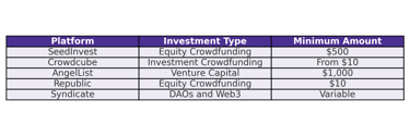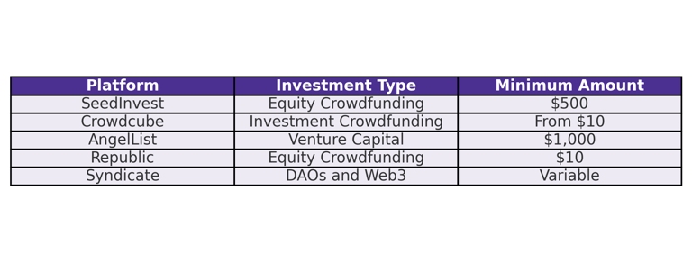 🔹 Recommended platforms: SeedInvest and Crowdcube .
